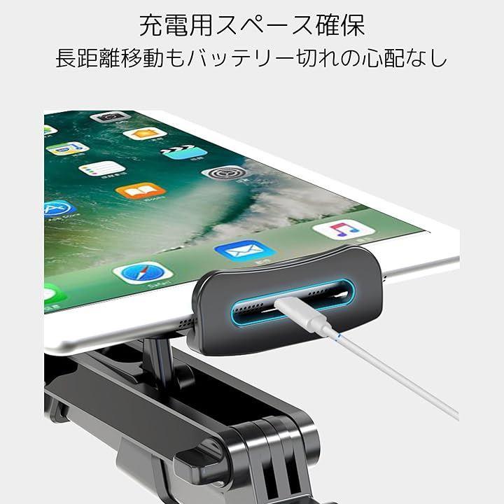 「安定した保持力」伸縮アームスタンドは、スマホやタブレットをしっかりと固定し、走行中の振動でも安定した視聴を可能にします。