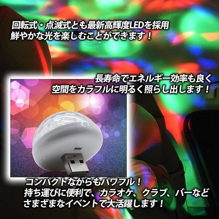 回転タイプと点滅タイプそれぞれ、様々な照明モードを搭載しており、このミラーボールが車内をパーティールームの様な雰囲気、ドライブがまるでディスコタイムのような特別な体験に。