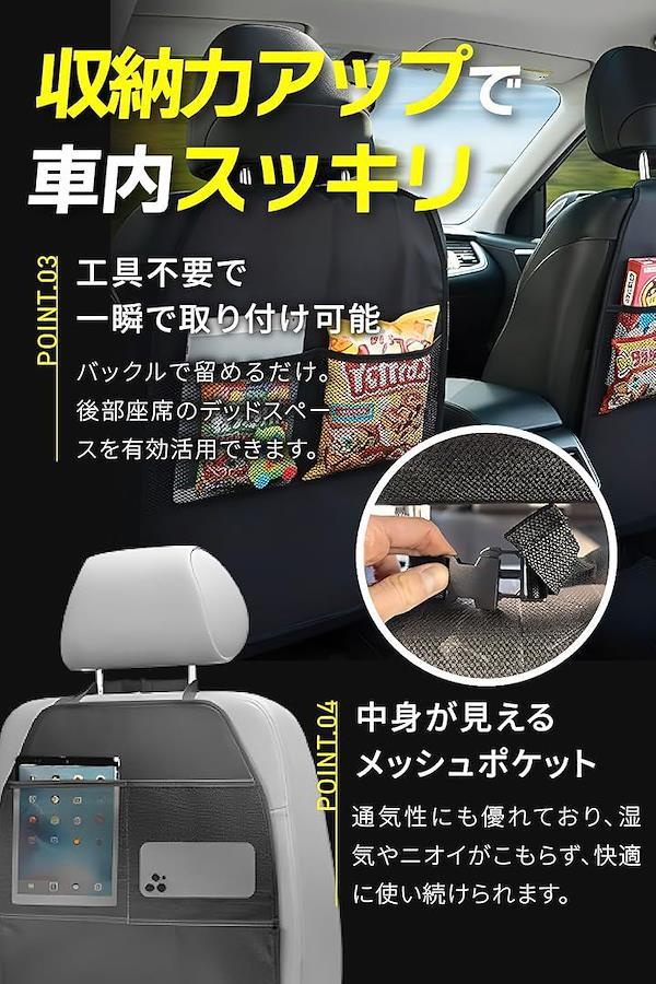「収納力アップで車内スッキリ」 背面には多機能ポケットを搭載。