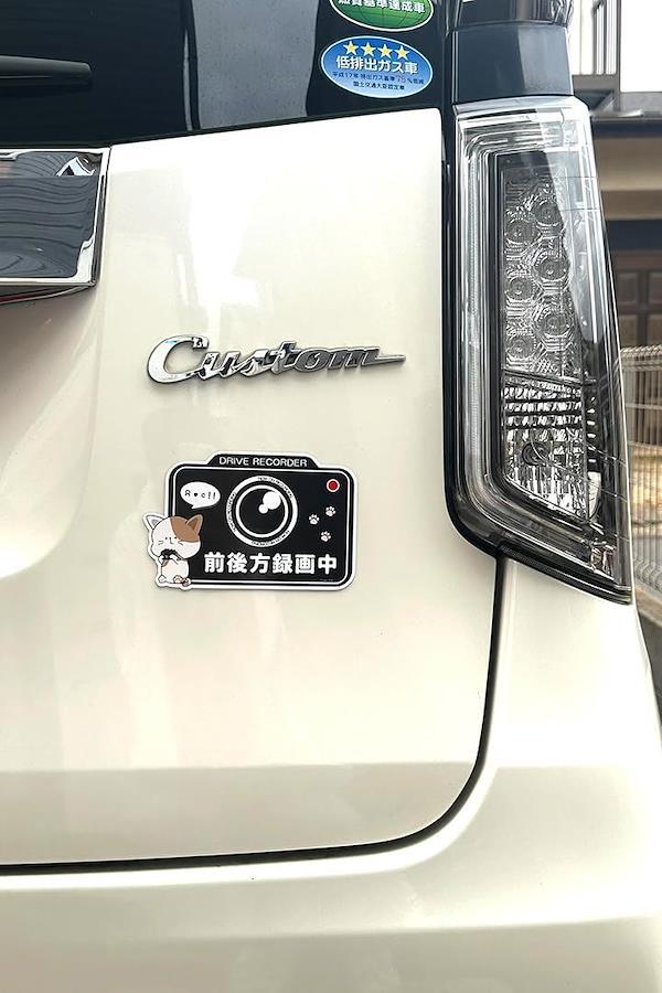 後続車両への煽り運転対策として、思わず優しい気持ちになるようなかわいいキャラクターをワンポイントにシンプルでポップなデザインで作りました。