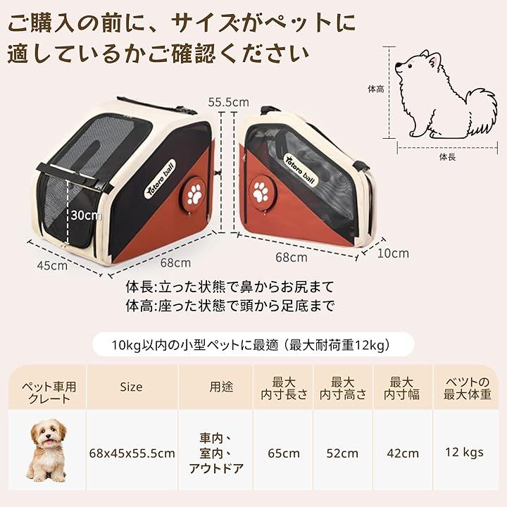 「しっかりした作り」愛するわんちゃんのための車載ケージ:10kg以下のペットに適用、快適で安全な移動空間。