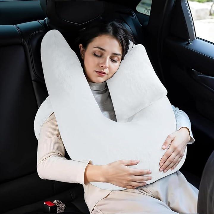首と腕を心地良い場所に固定し、乗り物移動中の寝違えや体の疲労を軽減させます。