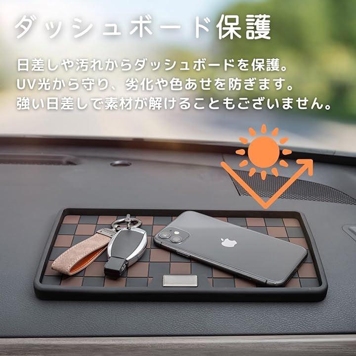「市松模様のデザイン」伝統的な市松模様がダッシュボードマットに施されており、エレガントな雰囲気を演出します。