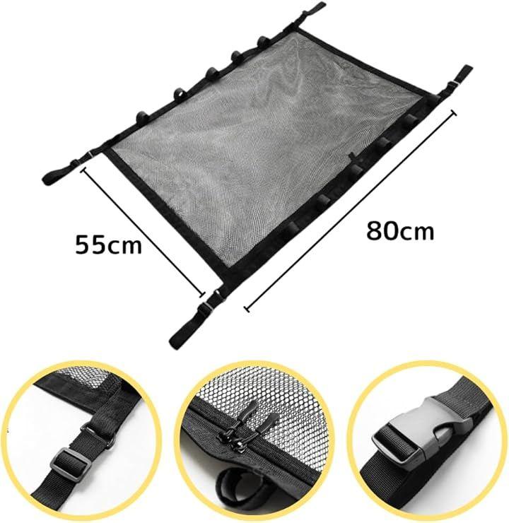 仕掛けや毛布を収納できるをファスナー付きメッシュポケットで車内をキレイに整頓もできるすぐれもの。