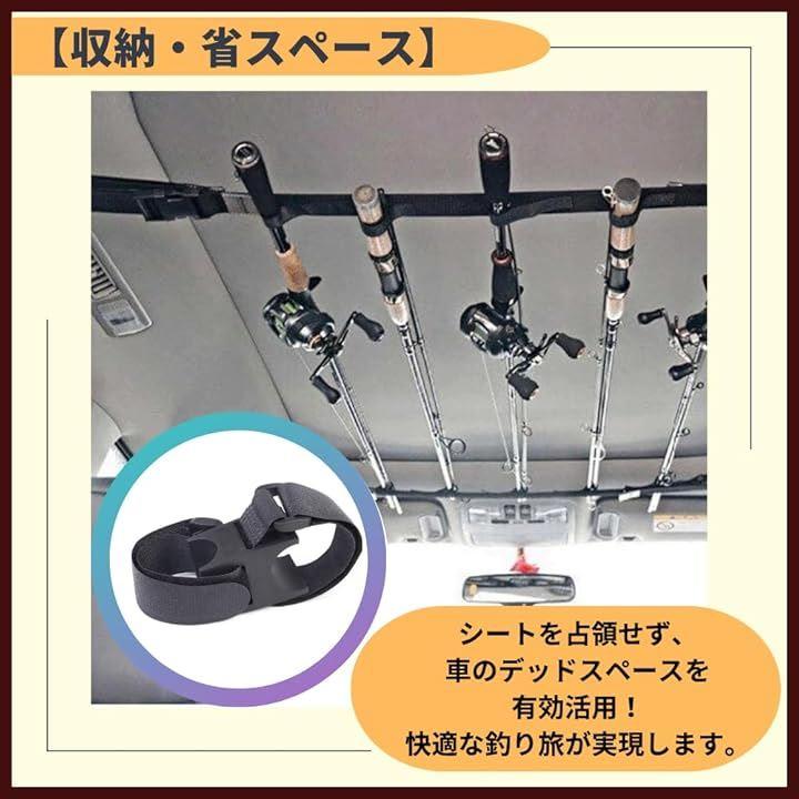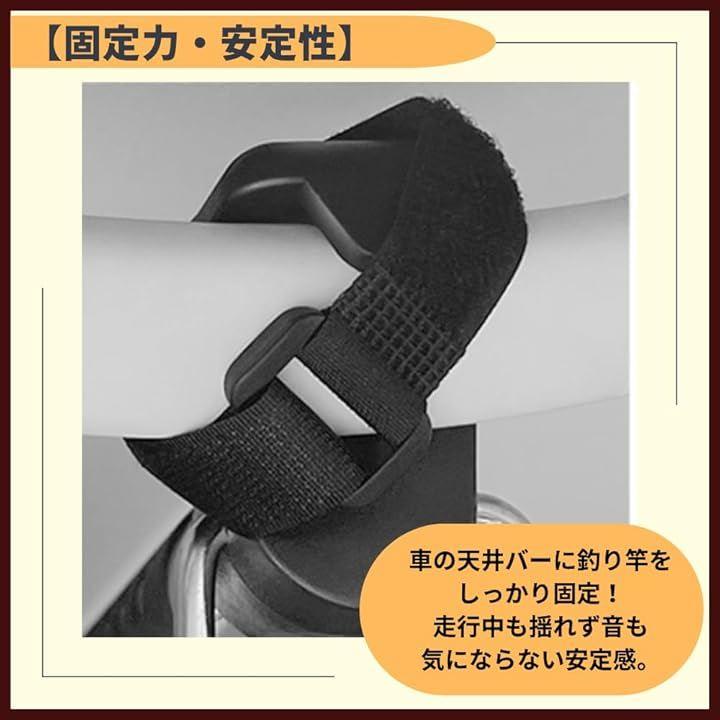 「固定力・安定性」車の天井バーに釣り竿をしっかり固定。走行中も揺れず音も気にならない安定感。
