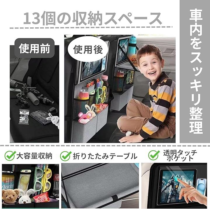 軽自動車など後席スペースが限られる車種では膝まわりと干渉する場合がありますので、サイズをご確認のうえご購入ください。