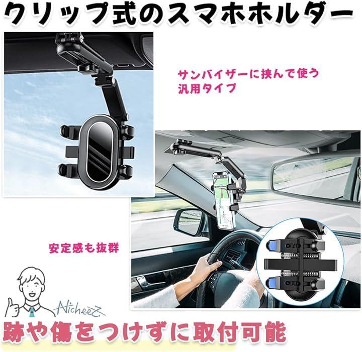 「多機能スマホホルダー」クリップ式の車用スマホホルダーです。