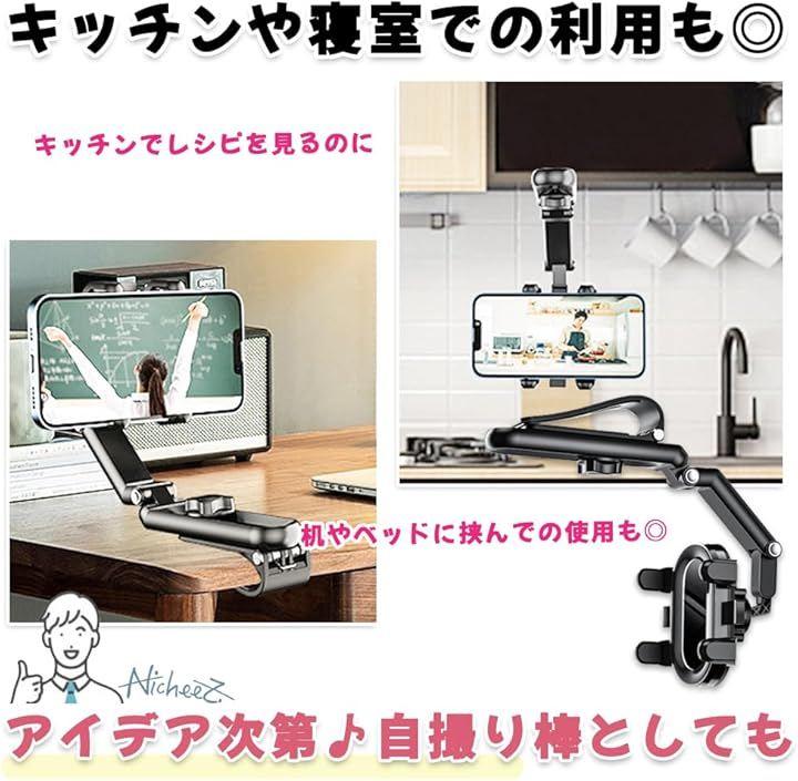 車載使用以外にもキッチンの扉に挟んでレシピを見たり、机やベッドサイドでの利用など使い方はアイデア次第。