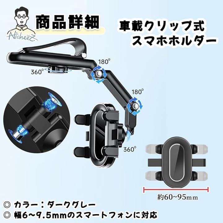 「商品内容」 車載クリップ式スマホホルダー カラー:ダークグレー 6~9.5cmのスマートフォンに対応