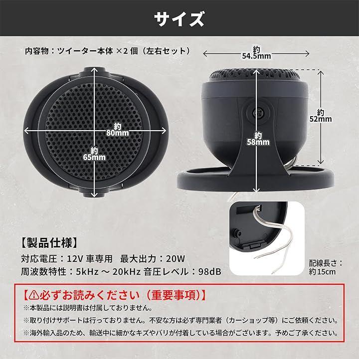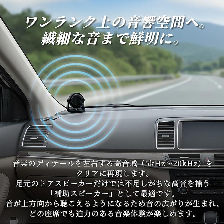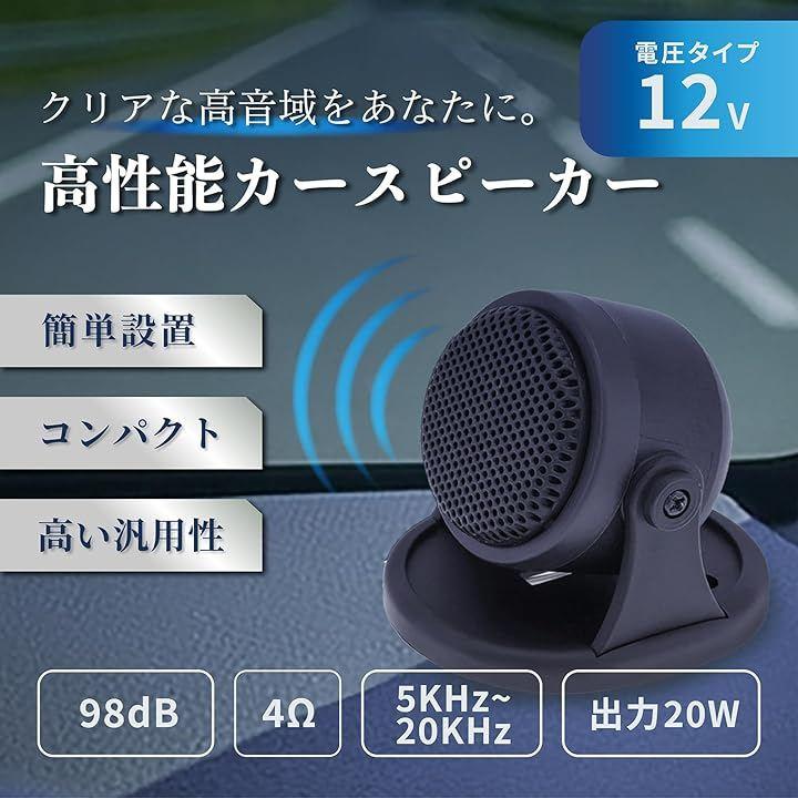 「12V対応・高出力20Wの高感度ツイーター」 4Ωインピーダンス・98dBの高感度設計により、コンパクトながらパワフルなサウンドを実現。