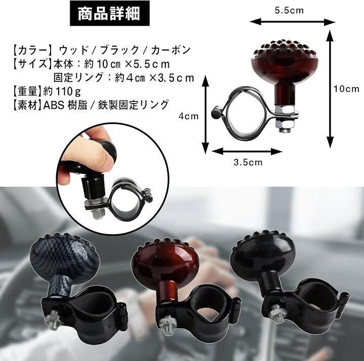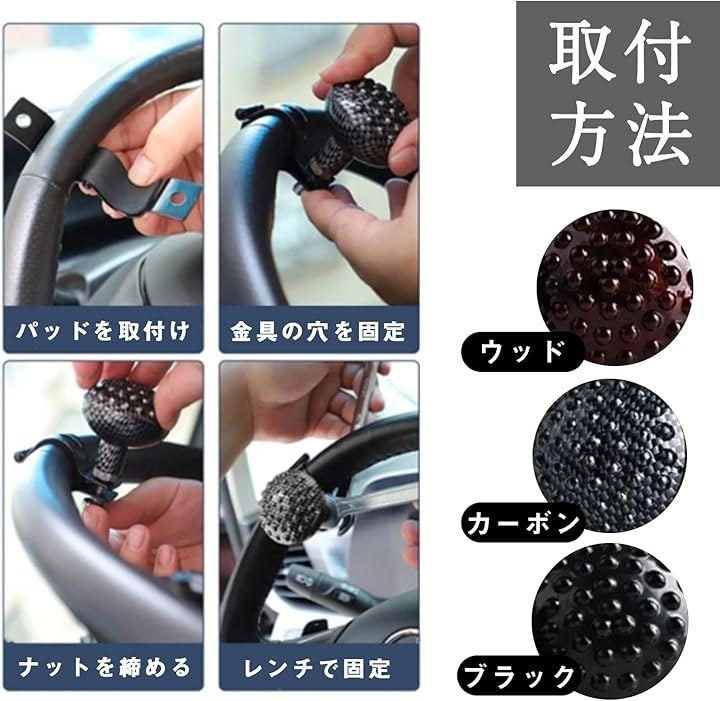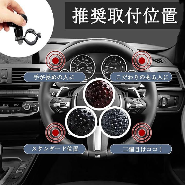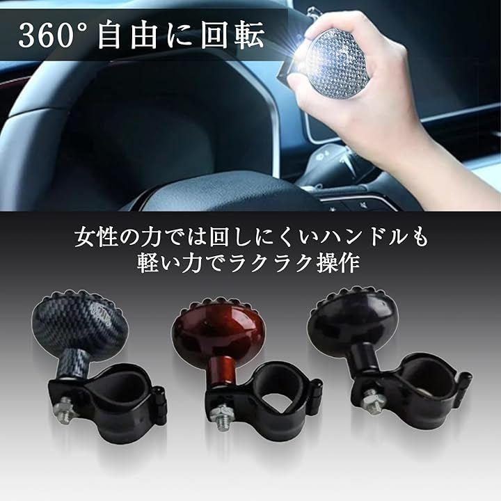「片手操作をサポートするハンドルスピナー」 ステアリングに取り付けて使えるハンドルスピナーで、片手でのハンドル操作を補助し、駐車時や車庫入れなどの取り回しを楽にするアイテムです。