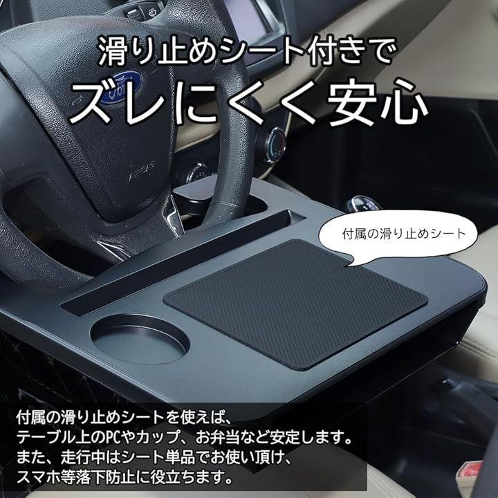 カップや書類が滑りにくくなる滑り止めシートも付属しており、傾斜のある座席でも安心して使用できます。