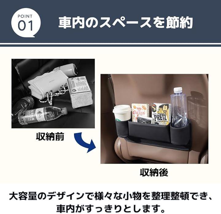 「車内のスペースを節約」車用収納ポケットは、シートバックに取り付けて車内の収納スペースを有効活用します。