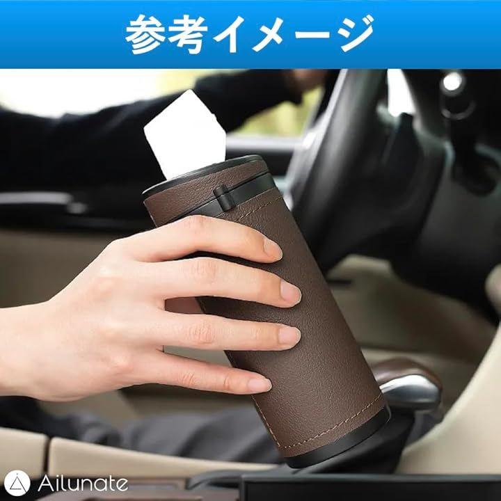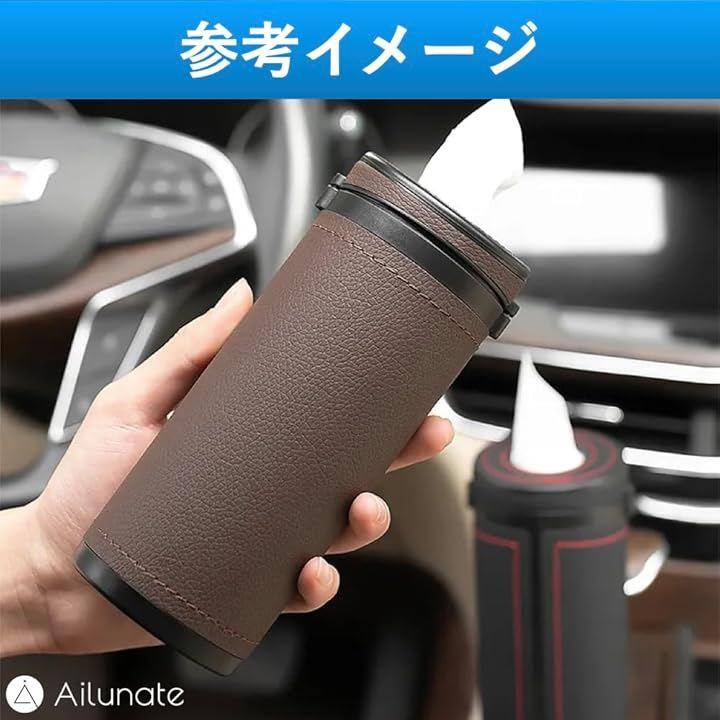 「車用筒型ティッシュケース」ドリンクホルダーに収まるスタイリッシュでおしゃれなレザーティッシュケースです。