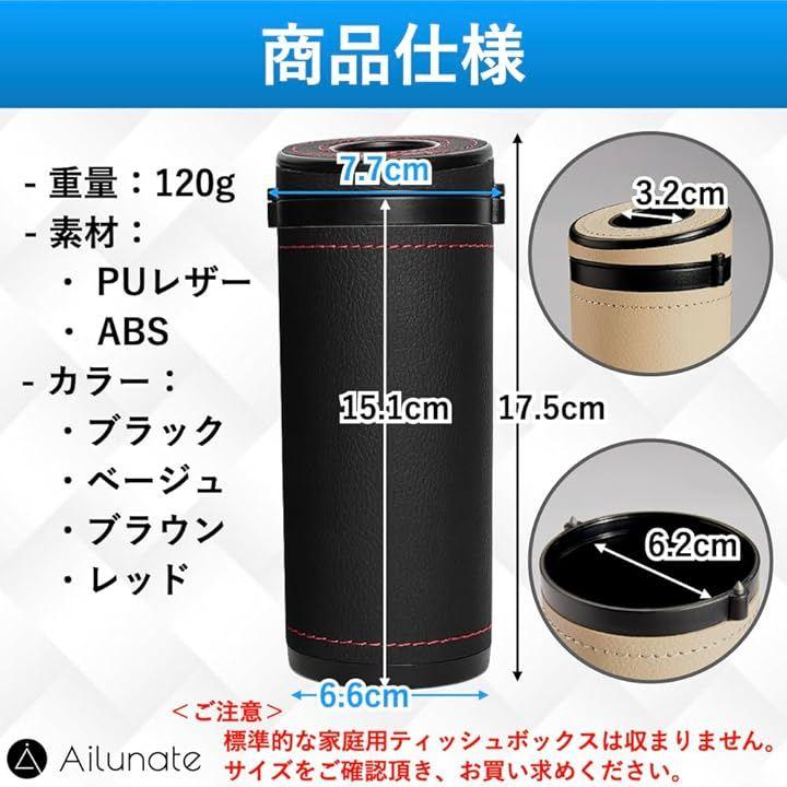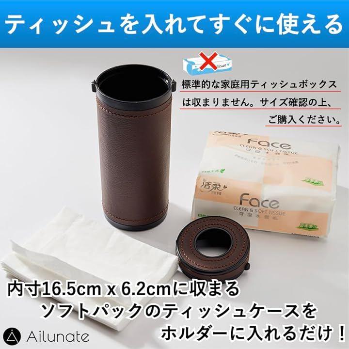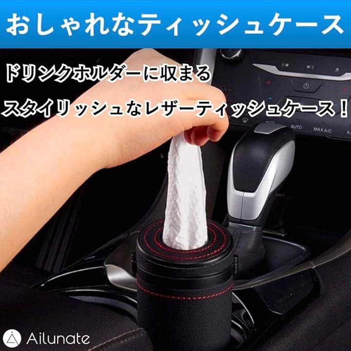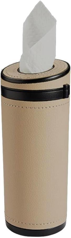 「車用筒型ティッシュケース」ドリンクホルダーに収まるスタイリッシュでおしゃれなレザーティッシュケースです。