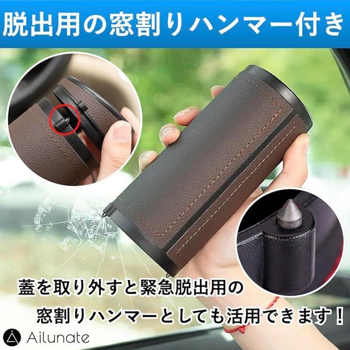 「脱出用の窓割りハンマー付き」蓋を取り外すと緊急脱出用の窓割りハンマーとしても活用できます。突起部はチタン合金を使用し、窓割り器具として活用でき、緊急時のトラブルを回避できます。