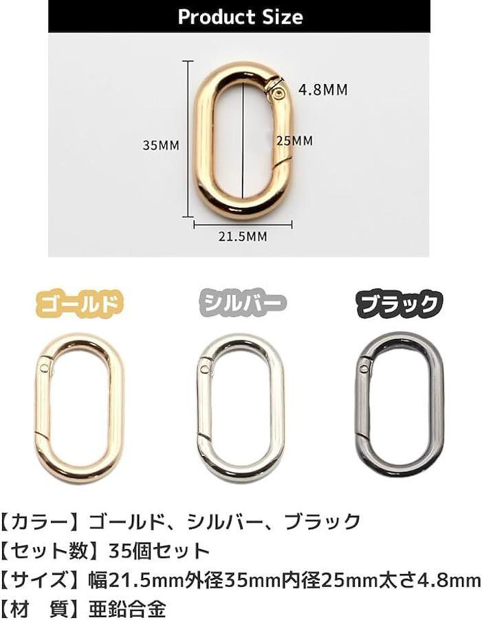 ・外径35mmと小ぶりですので鍵など小物を掛けたり、キーホルダーやバッグのパーツにおすすめの手芸用品です。