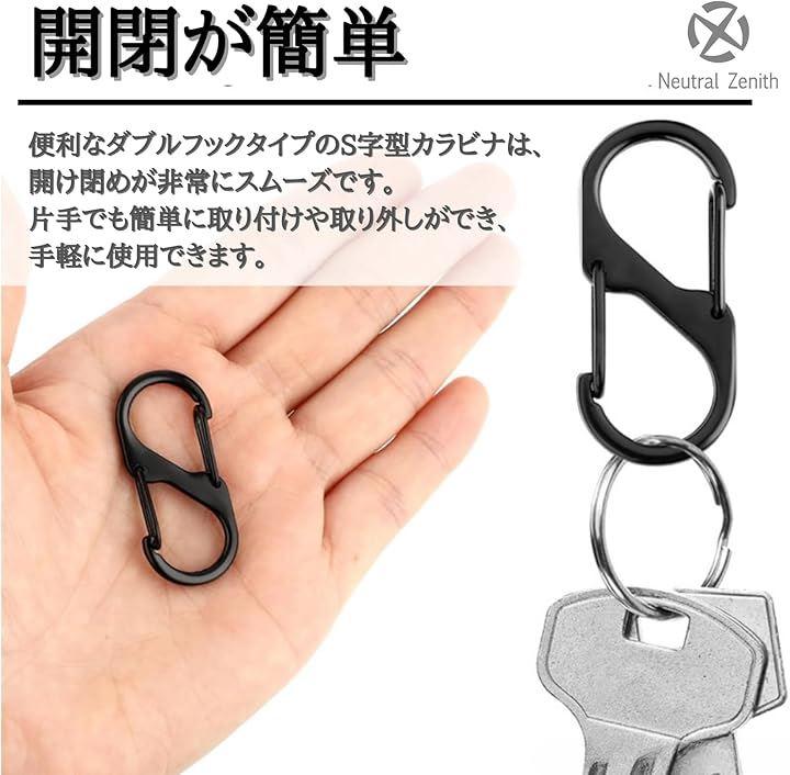 「コンパクトなS字カラビナ」非常に軽量でコンパクトなS字型の小型カラビナフックは、持ち運びが便利です。