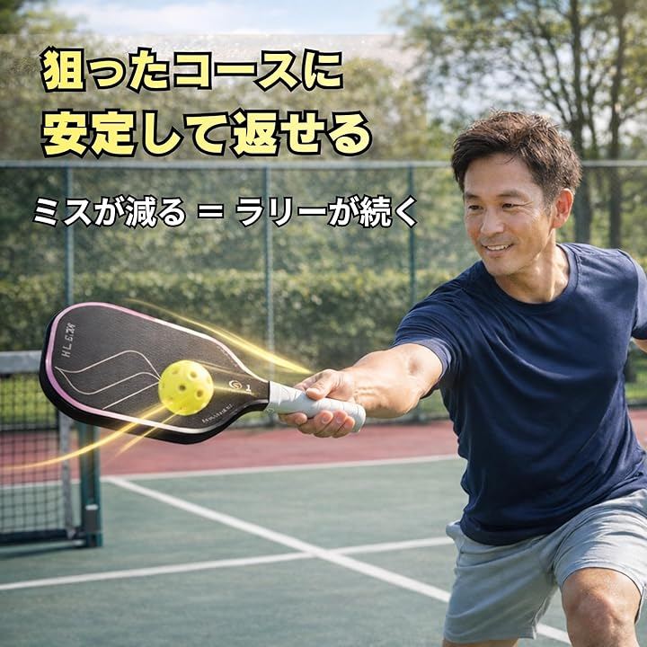 パワーを前面に押し出すタイプではなく、狙った方向へ安定して返球することを重視した設計のため、ラリー中のミスヒットを抑えたい方や、コースを意識したプレーを行いたい方に適しています。