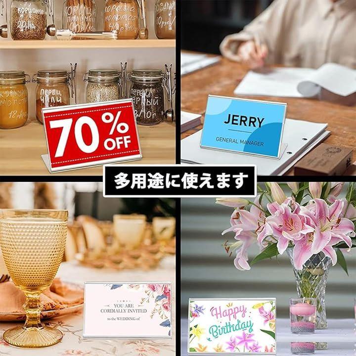 「シンプルなデザイン」イベントや展示会での商品名プレート、結婚式や婚活パーティー、同窓会などの来場客の席に置くネームカードのスタンドとしてもお使いいただけます。