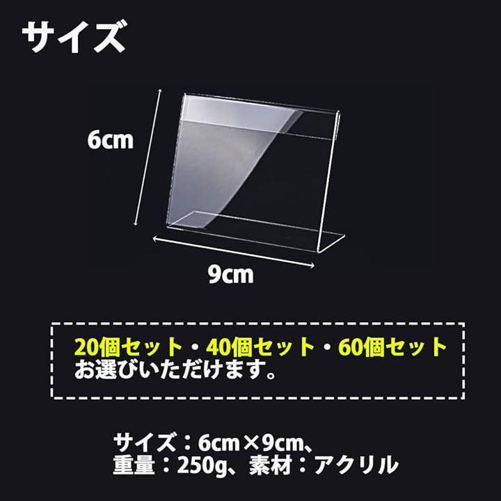 「商品詳細」サイズ:6cmx9cm、重量:250g、素材:アクリル、パッケージ内容:本体x60個セット
