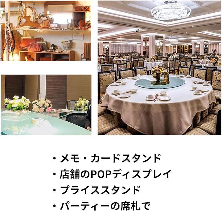 「オフィスやショップで」メモ・カードスタンド、店舗のPOPディスプレイ、プライススタンド、パーティーの席札でのカードスタンドとして最適です。