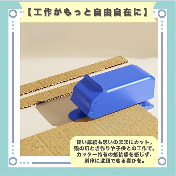 猫の爪とぎ作りや子供との工作で、カッター特有の抵抗感を感じず、創作に没頭できる喜びを。