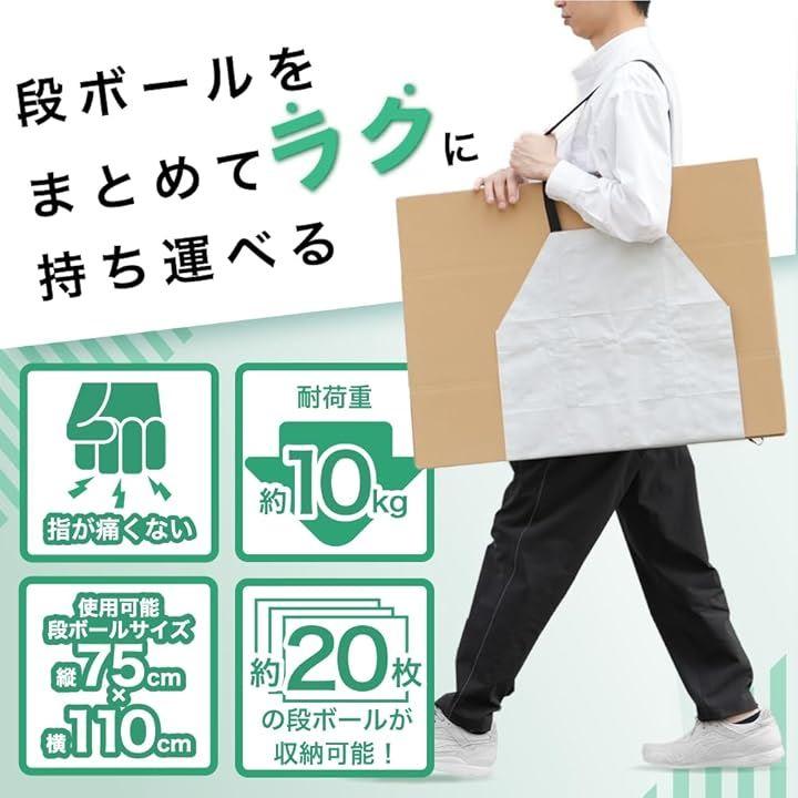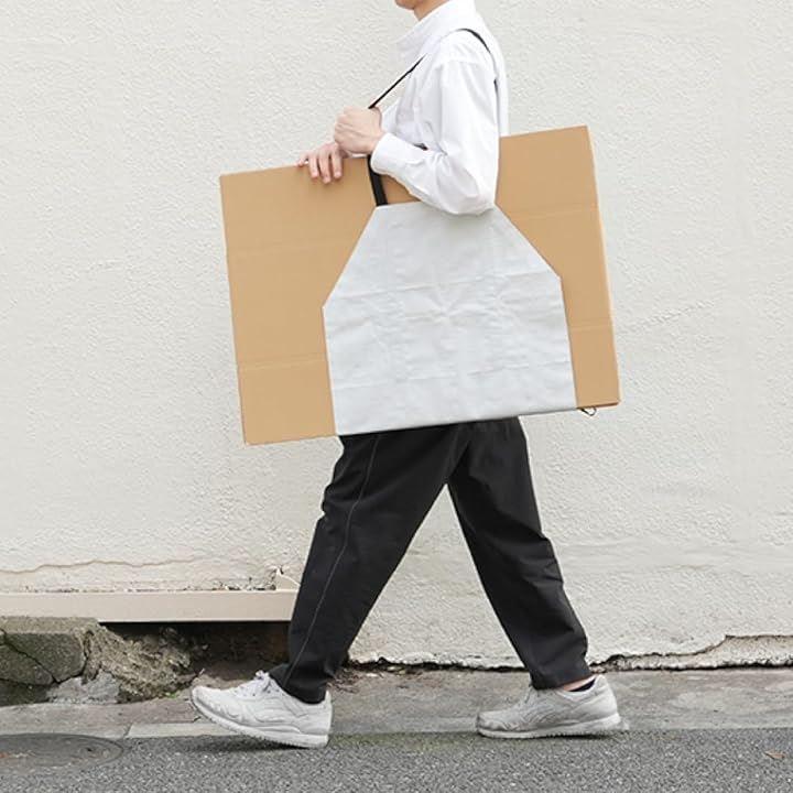 今までの段ボール持ち運び時の悩みだった、「紐で指が痛い「大量に運ぶ時、途中でこぼしてしまう」「紐が途中でほどけてダンボールが地面に落ちる」を解決。トートバッグ感覚で手軽に段ボールを持ち運べるダンボールキャリーバッグです。