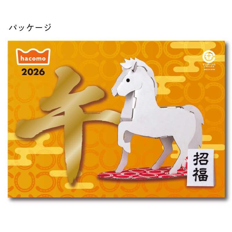 素材は白ダンボール。絵の具やクレヨンで好きな色に塗るのも楽しいですね。2026年は午年。お正月はお子さんのオリジナリティ溢れる色柄の干支飾りを、どーんと飾ってみましょう。赤座布団と組み合わせると、ダンボールでも正月感がかなり出ますよ。