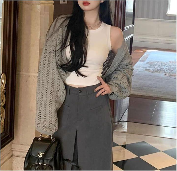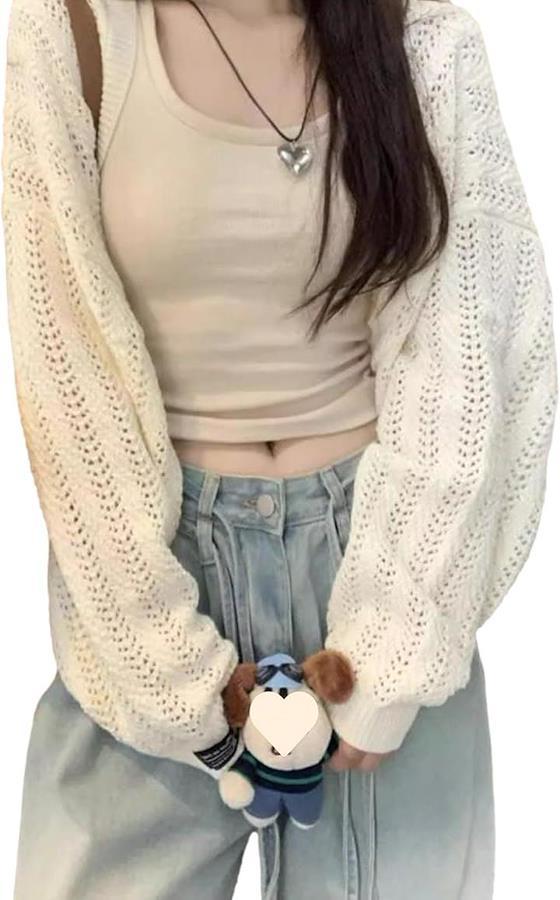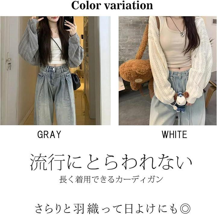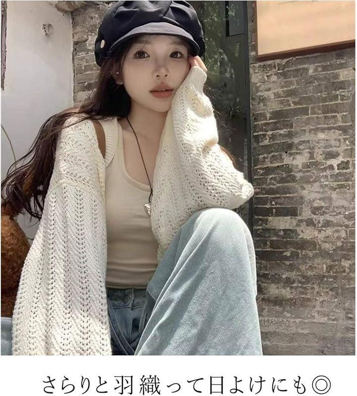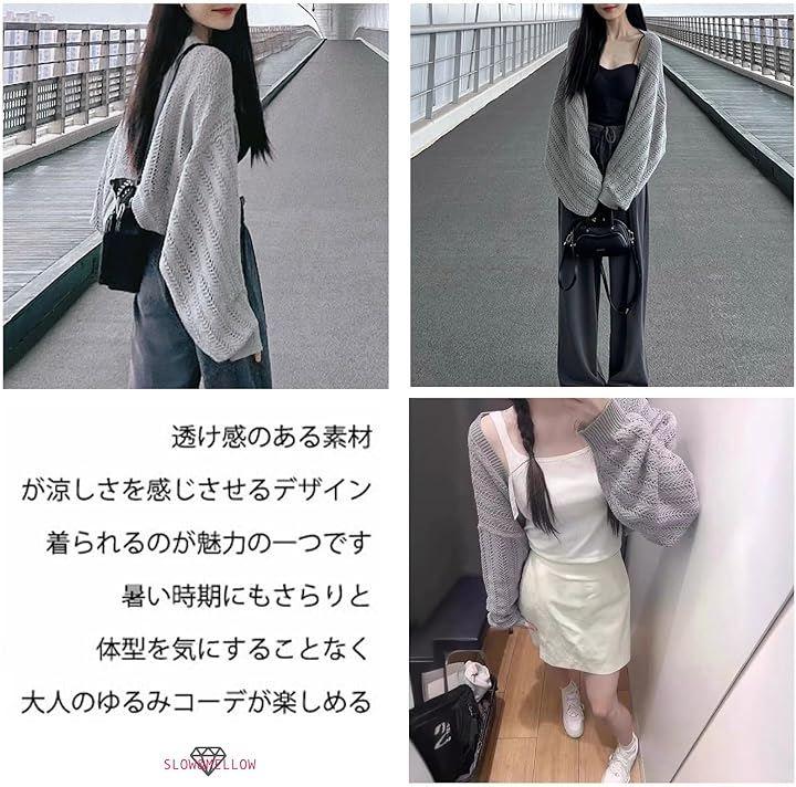 抜け感のある編み目デザインが特徴のメッシュカーディガンです。