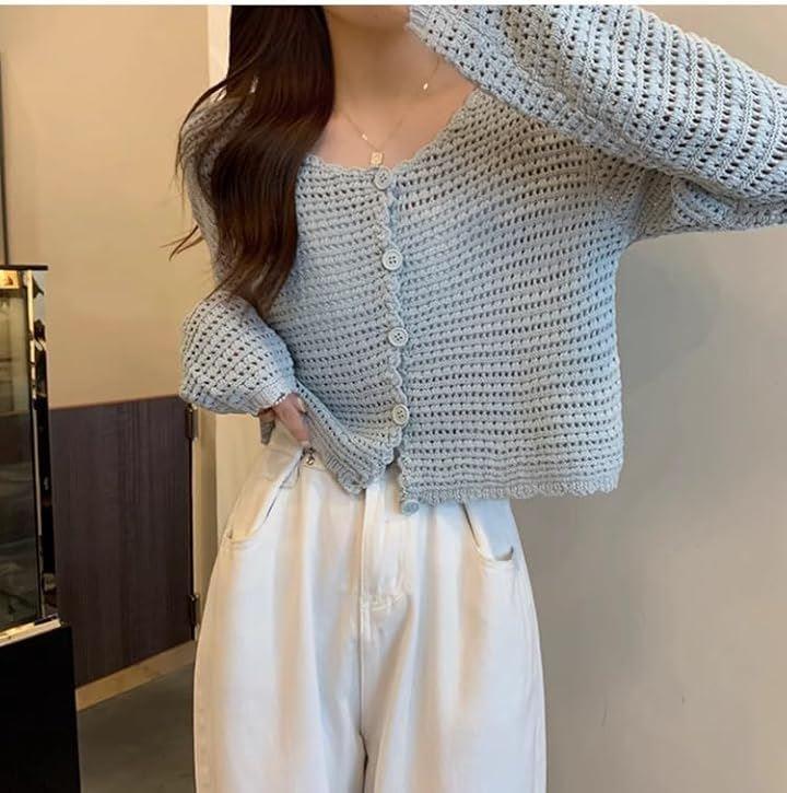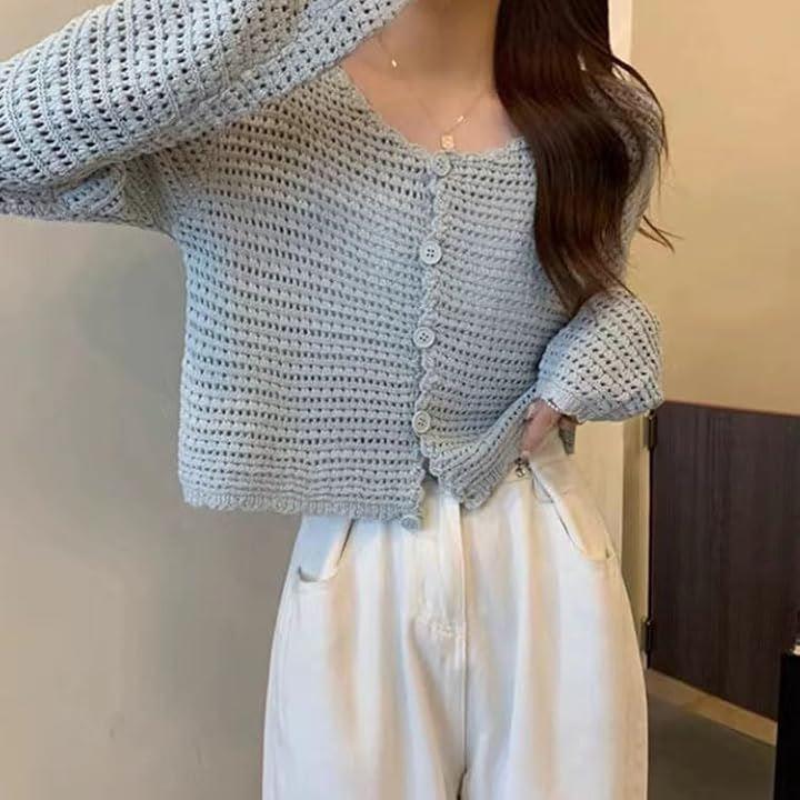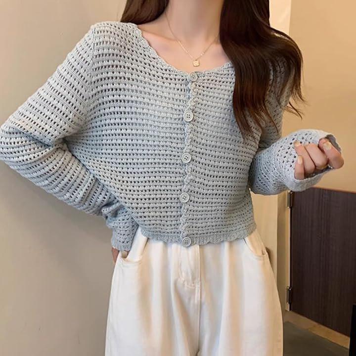 Vネックでセクシーな鎖骨が現れて魅力なカーディガン。
