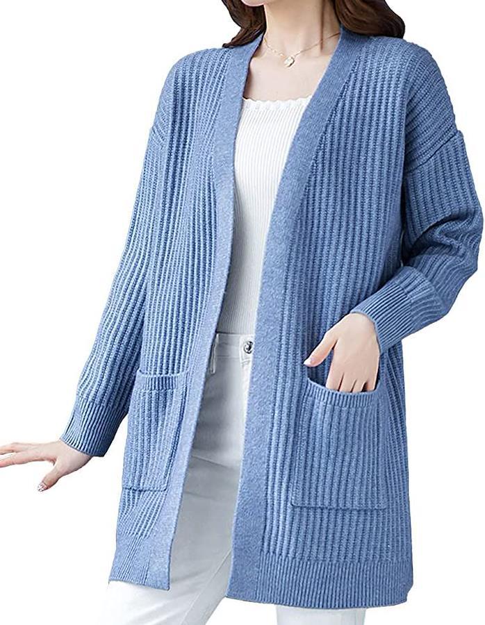柔らかく肌触りのいいニットカーデは羽織りとしても◯オフィス用でも◯。