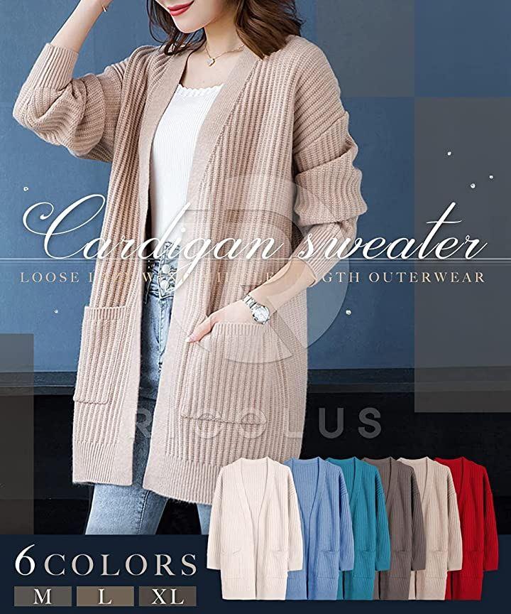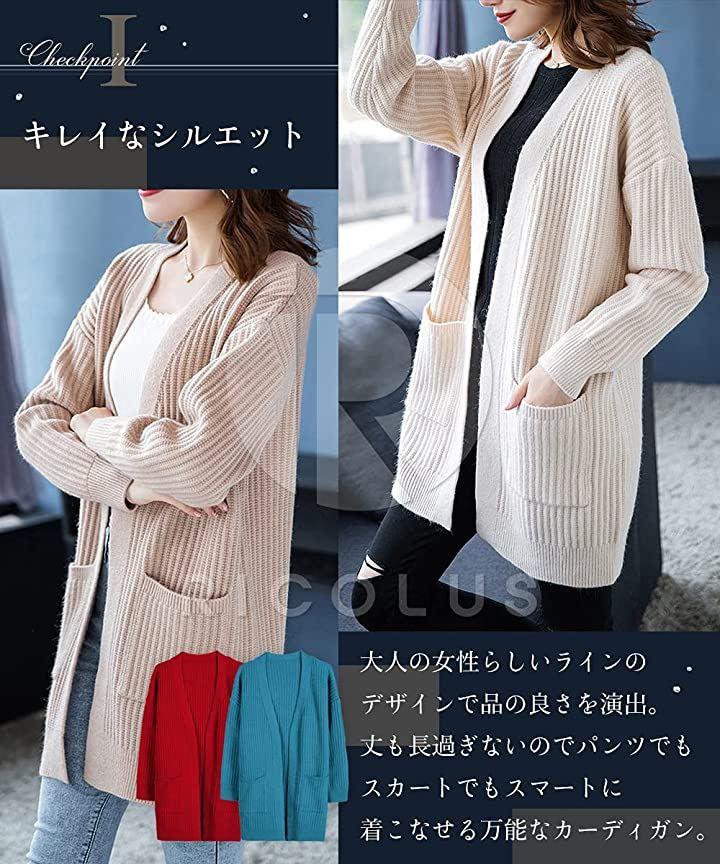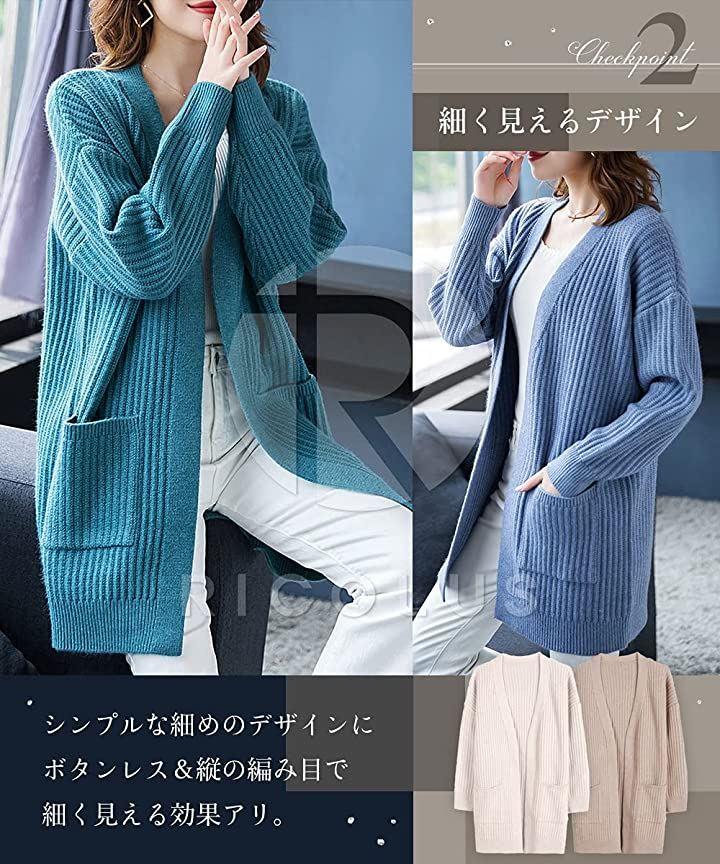 *シンプルなデザイン*シンプルな細めのデザインにボタンレス&縦ラインの編み目で、細く見える効果があり、いつも着ていたい一枚。