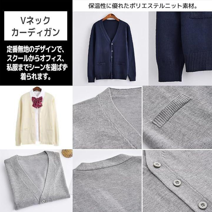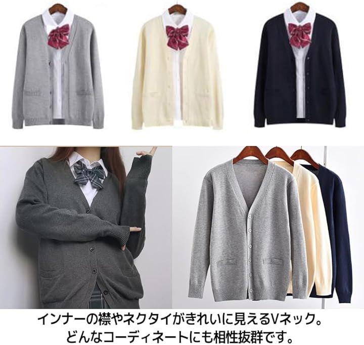 定番無地のデザインで、スクールからオフィス、私服までシーンを選ばず着られる長袖ニットカーディガンです。