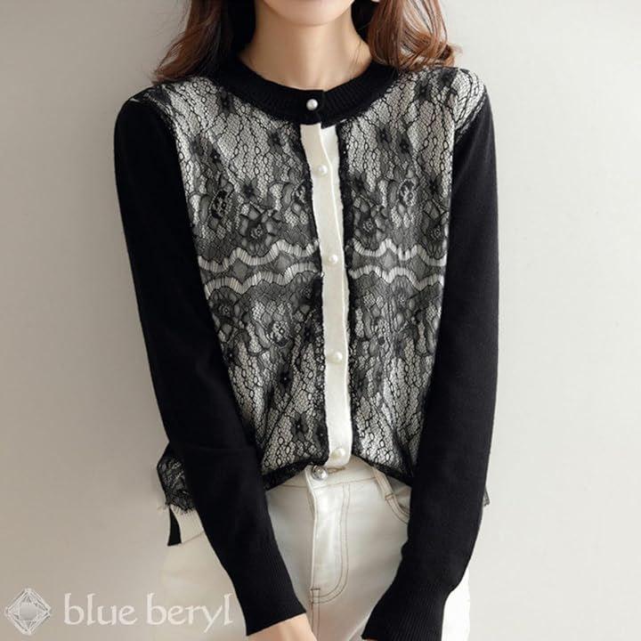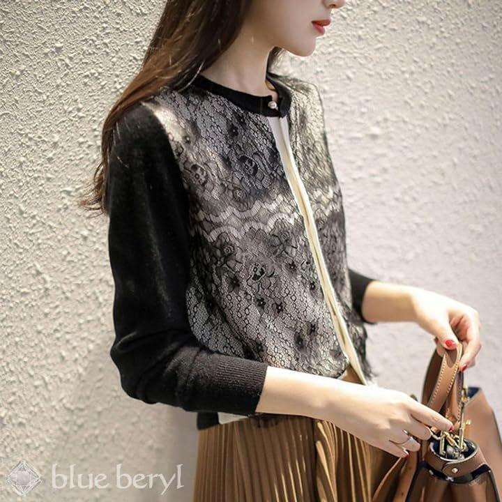 繊細で優美なレースを前面にあしらったニットカーディガン。