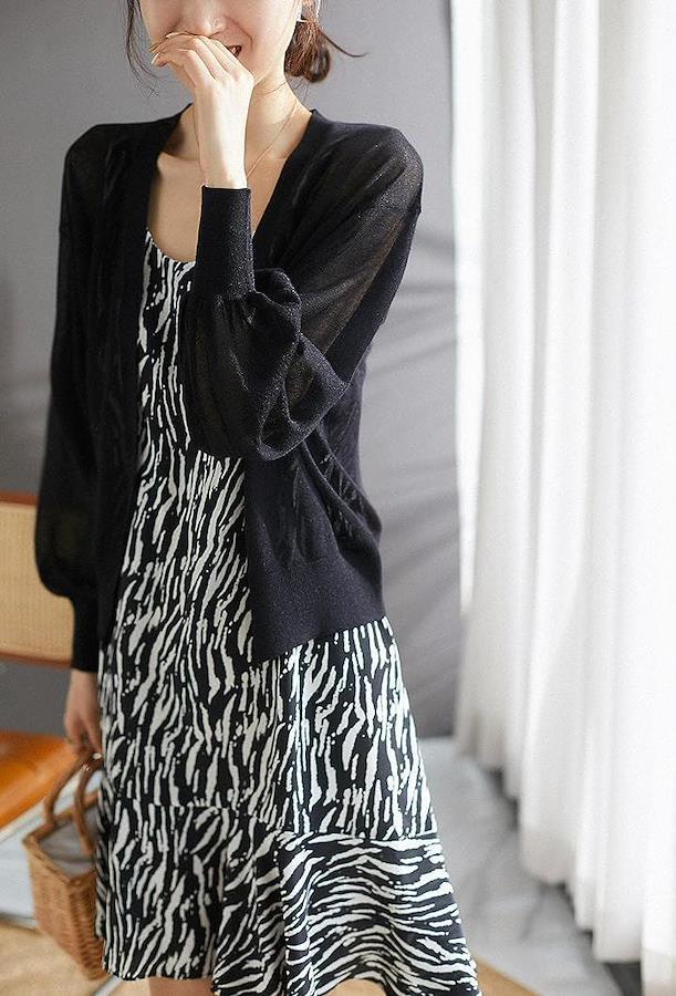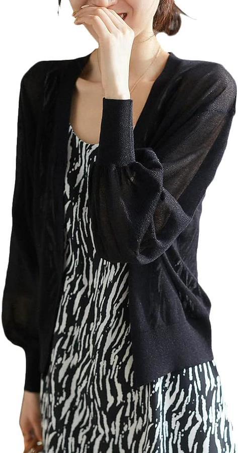 本カーディガンはパフスリーブをデザインされて、可愛くなりすぎなくて、一気に細見え効果をかなえてくれ、エレガントの雰囲気も演出されて、どんな年齢と洋服でもあわせます。