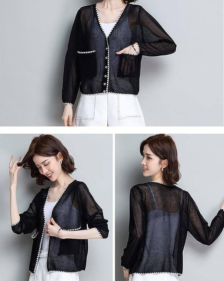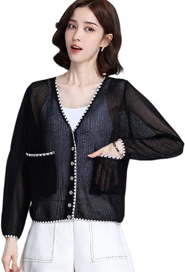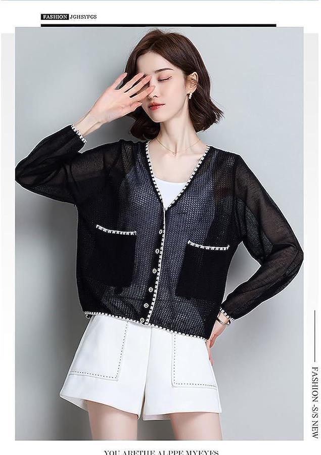 本カーディガンはきれいな金属製のボタンを搭載してファッション感を醸し出して、フロントにユニークな2つポケットをデザインされて、違いカラー素材で服のエッジをつつみ、高級感とシックなカーディガンです。
