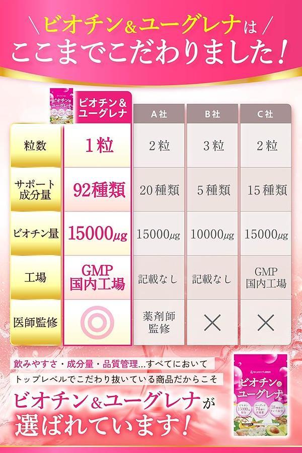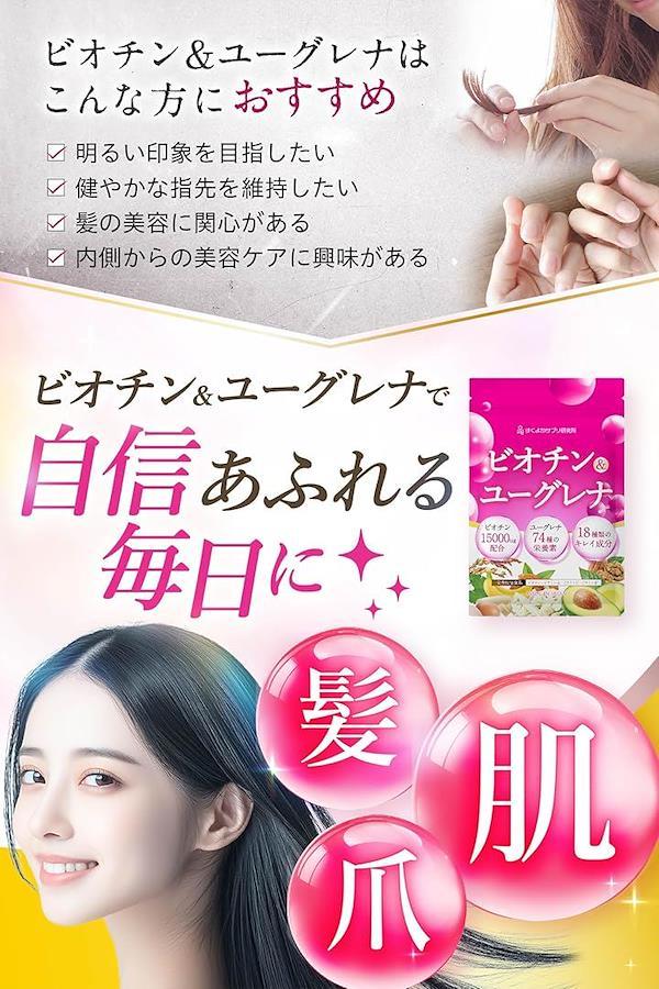 *「多角的にサポート」「ビオチン&ユーグレナ」は、国が定める基準を満たした4つの栄養成分(ビオチン・ビタミンA・ビタミンE・ビタミンC)を配合しています。