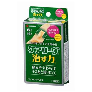 ■商品概要メーカー:ニチバン商品名:ケアリーヴ 治す力 CN14S Sサイズ(14枚入)区分:医療機器内容量:14枚商品概要:モイストヒーリング(湿潤療法)で、キズを早くきれいに治すハイドロコロイド素材の絆創膏です。ハイドロコロイドという特殊素材を使った「モイストパッド」でキズ口をピタッと密閉し、キズ口から出る体液をパッドが吸収、保持。キズを治すのに適した潤った環境をつくるので、皮ふが早くきれいに再生するのを促します。また高密度ウレタン不織布を使用。 屈曲部にもぴったりフィットしてはがれにくく、指とテープの隙間をほとんどつくらないため、水仕事をしていても、すき間から水が入りにくい設計になっています。低刺激性粘着剤で角質細胞のはがれが少ないのも特徴です。切りキズ、すりキズ、さしキズ、かきキズ、靴ずれ等の創傷及び軽度の熱傷(やけど)の「治療の促進」、「痛みの軽減」、「湿潤環境の維持」、「保護」に最適です。JANコード:4987167065737商品コード:074904913