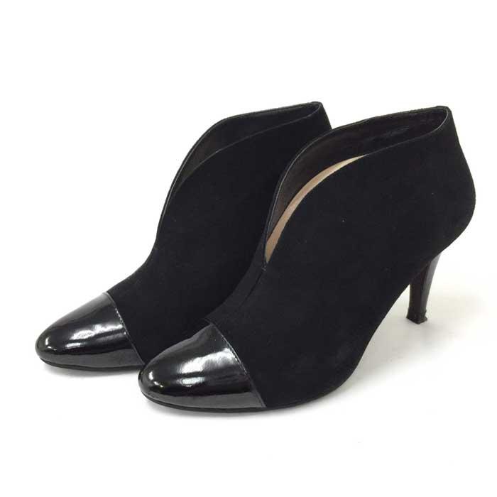 Carino Booties, Suede-like, Black, Size 22.5cm, Pre-owned, Women's