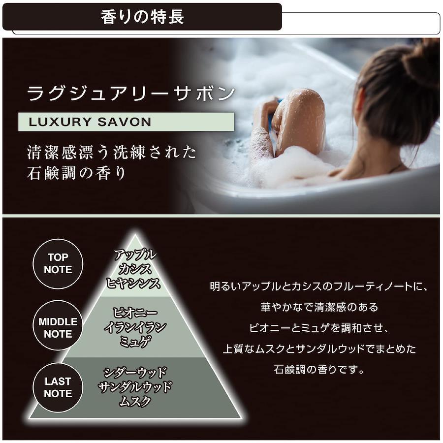 ●カーメイト 噴霧式フレグランスディフューザー用フレグランスオイル。 噴霧式フレグランスディフューザーでオイルが無くなるまで均一に香るように処方されています。 [対応製品] ・ブラング 噴霧式フレグランスディフューザー (品番:L10001/L10002) ・ブラング 噴霧式フレグランスディフューザー (品番:L10003/L10004) ・ルーノ 噴霧式フレグランスディフューザー (品番:L10005) ※各種噴霧式フレグランスディフューザー専用オイルは、BLANG・ルーノどちらのディフューザーでもご使用いただけます。 ●ブラング史上、最高プレミアムな香り 従来の香料よりワンランク上の高級香料を贅沢に使用。 ●ラグジュアリーサボンの香り 清潔感漂う洗練された石鹸調の香り。 【TOP NOTE】 アップル、カシス、ヒヤシンス 【MIDDLE NOTE】 ピオニー、イランイラン、ミュゲ 【LAST NOTE】 シダーウッド、サンダルウッド、ムスク 本製品はカーメイトの噴霧式フレグランスディフューザー専用のフレグランスオイルです。 噴霧式フレグランスディフューザーでオイルが無くなるまで均一に香るように処方されています。 【ラグジュアリーサボンの香り】清潔感漂う洗練された石鹸調の香り ディフューザー本体は別売です。