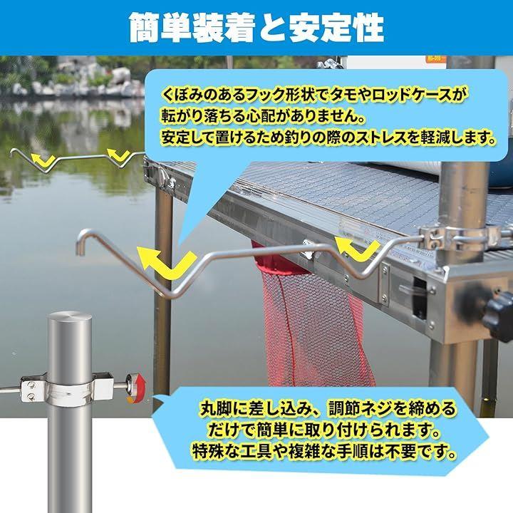 「概要」釣り台サイドハンガーは、収納に困るロッドケースや網、タモなどをスマートに置くための便利なツールです。