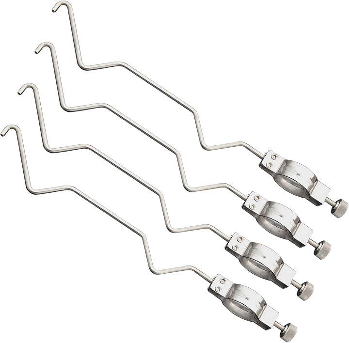 「サイズ」全長: 約33cm ホルダー部長さ: 約24cm 対応釣り台足サイズ: 約25~35mmの丸足 重量: 1本あたり約110g 材質: ステンレス製