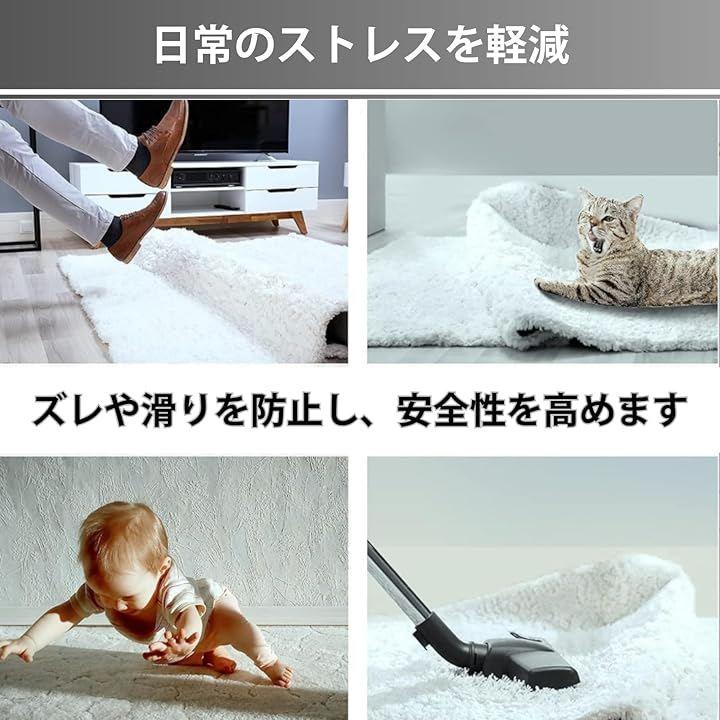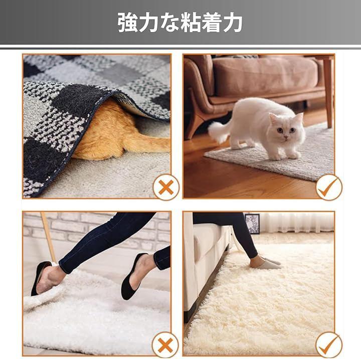 「強力な固定力でズレを防止」カーペットやラグをしっかり固定し、ズレや転倒のリスクを軽減します。