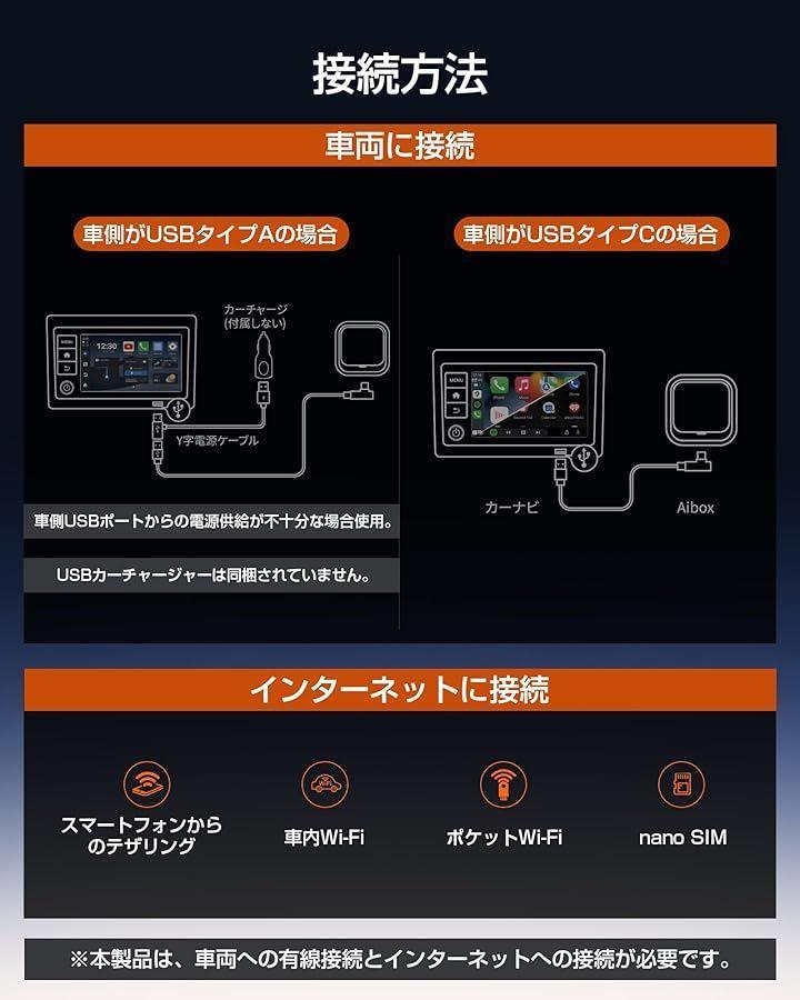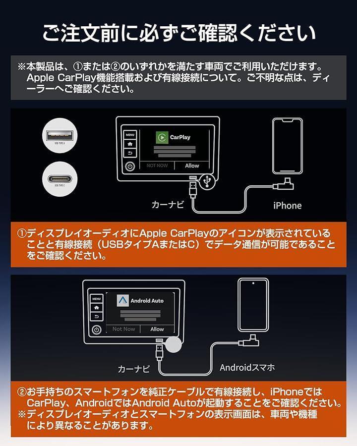 注意事項:1.本製品は、純正で有線CarPlayまたは有線Android Autoに対応している車両にのみ対応しております。