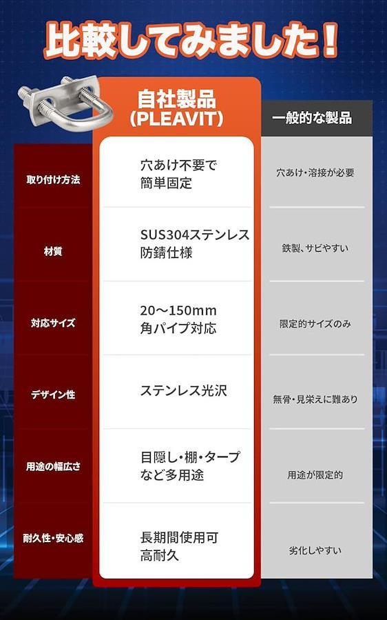 安心の対応サイズ: 複数のアルミ柱サイズに対応しており、角パイプ20mmタイプ~角パイプ150mmタイプと、幅広いサイズバリエーションからお選びいただけます。
