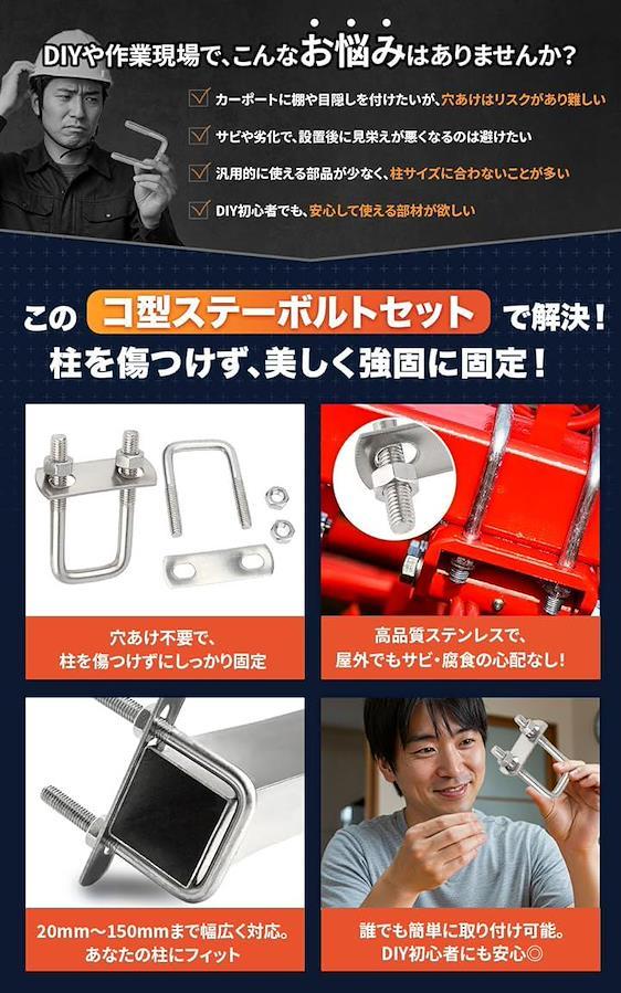 簡単DIYの新基準、ステンレス製カーポート取り付けコ型ステーボルト」