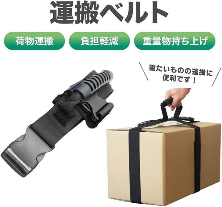 「運搬ベルトで負担軽減」普通に運ぶと手や腰に圧力を与え腰や肩に負担がかかりますが、ベルトを使えば荷物の重みを分散し腰や背中への負担が間違いなく軽減されます。