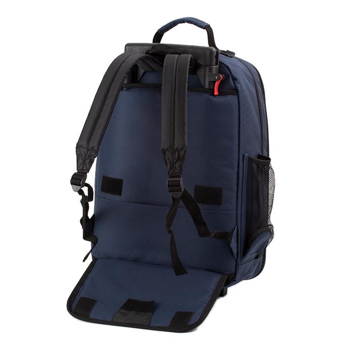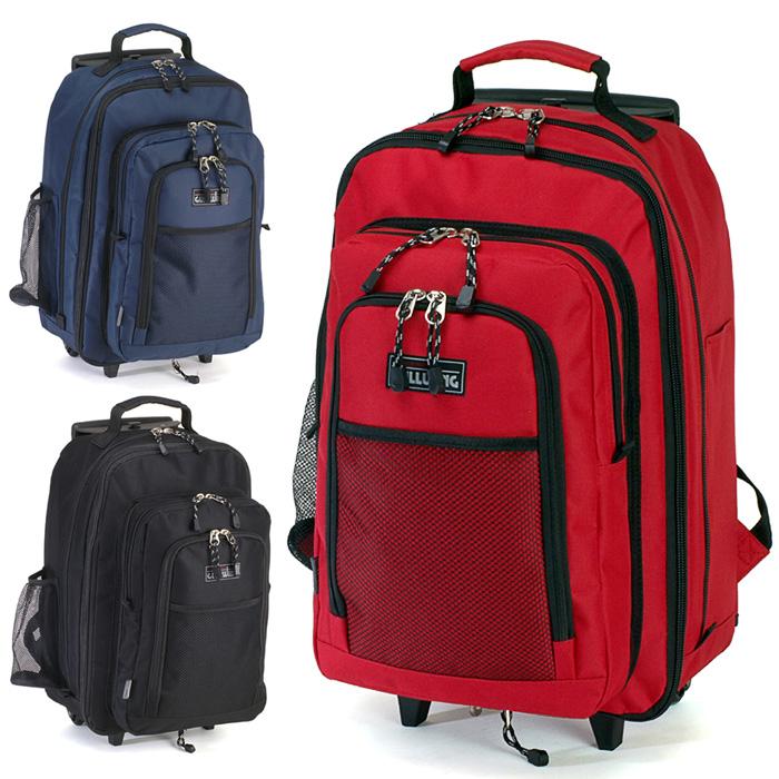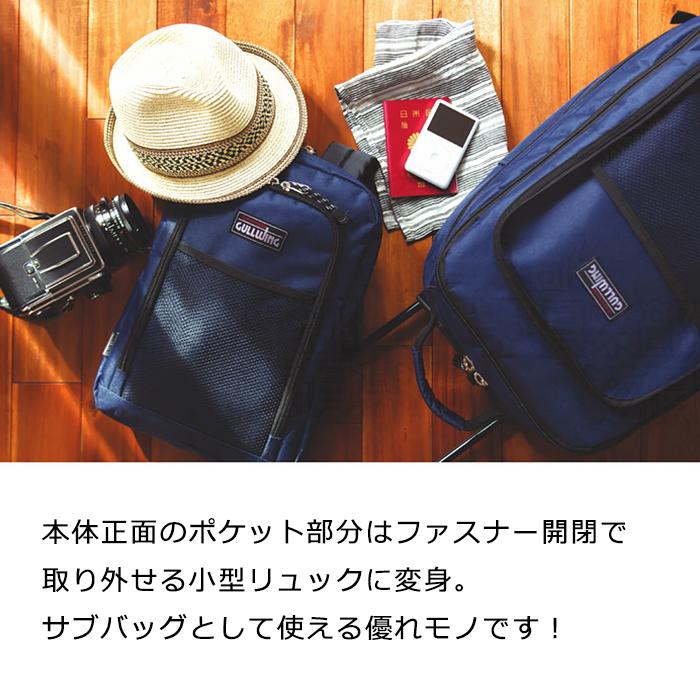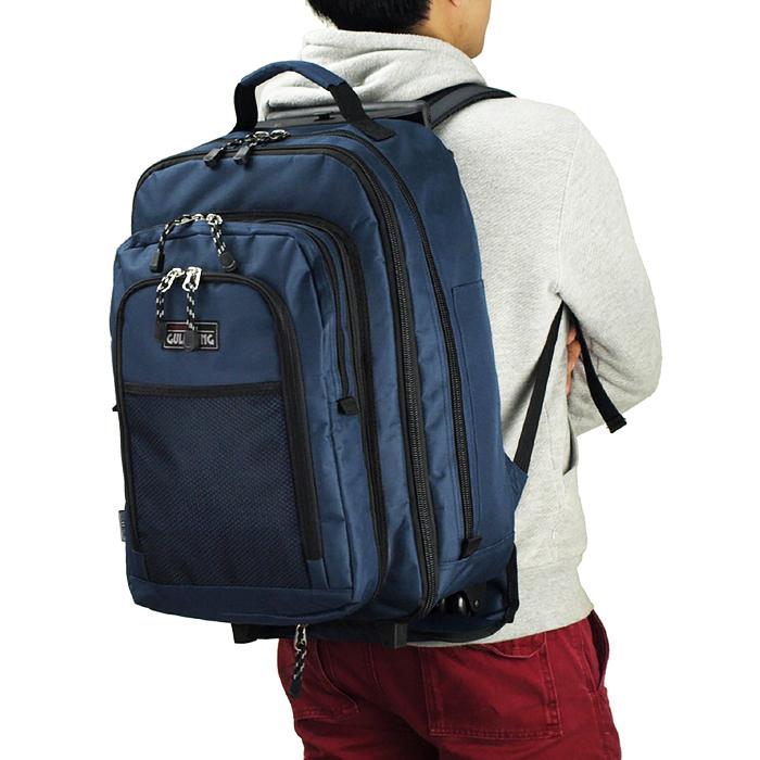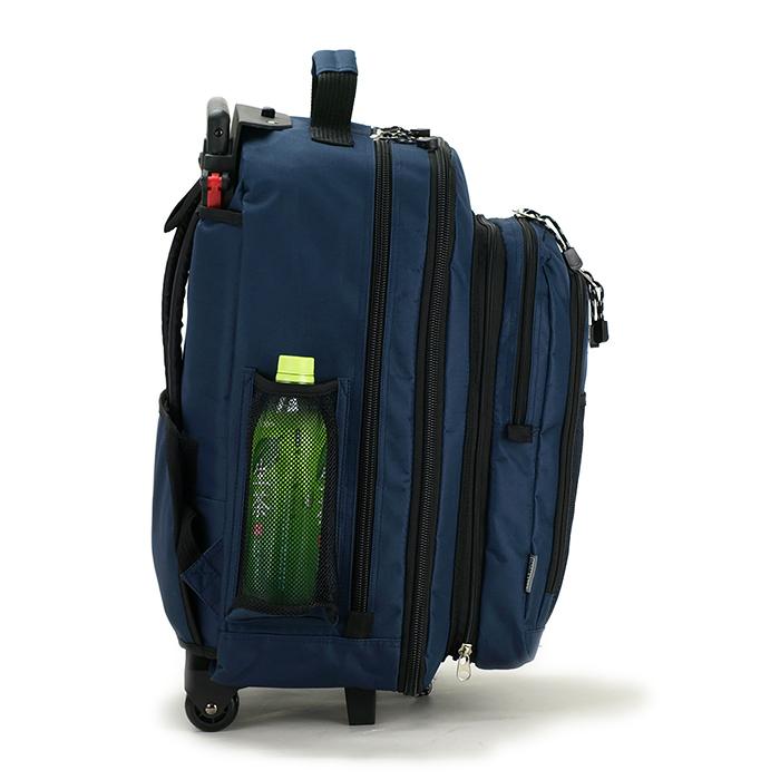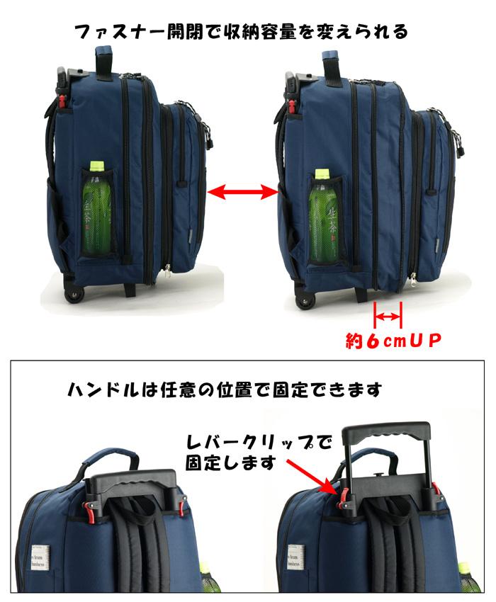 ☆キャリーバーは無段階のストッパーで停止☆キャリーバー付バックパック★パッド入りリュックベルト☆2輪キャスター式★デイパック着脱式☆マチW★ペットボトルネットポケット