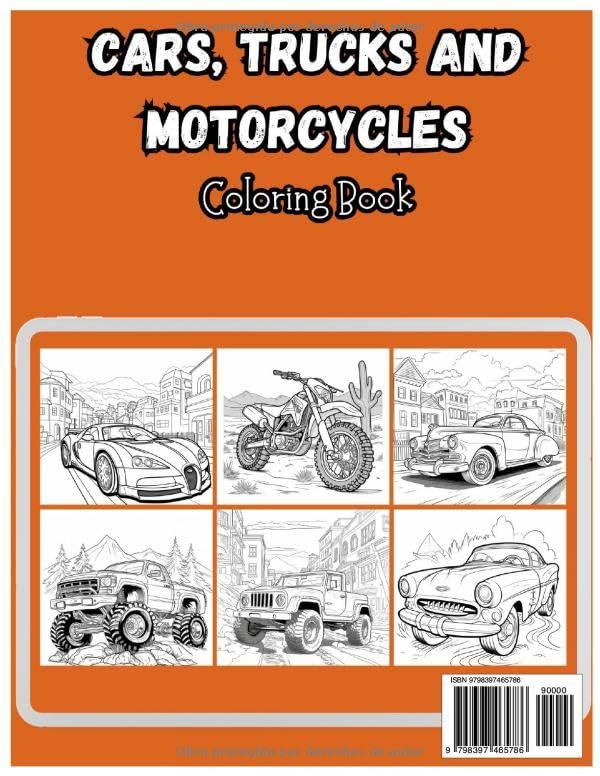 CARS, TRUCKS AND MOTORCYCLES Coloring Book
